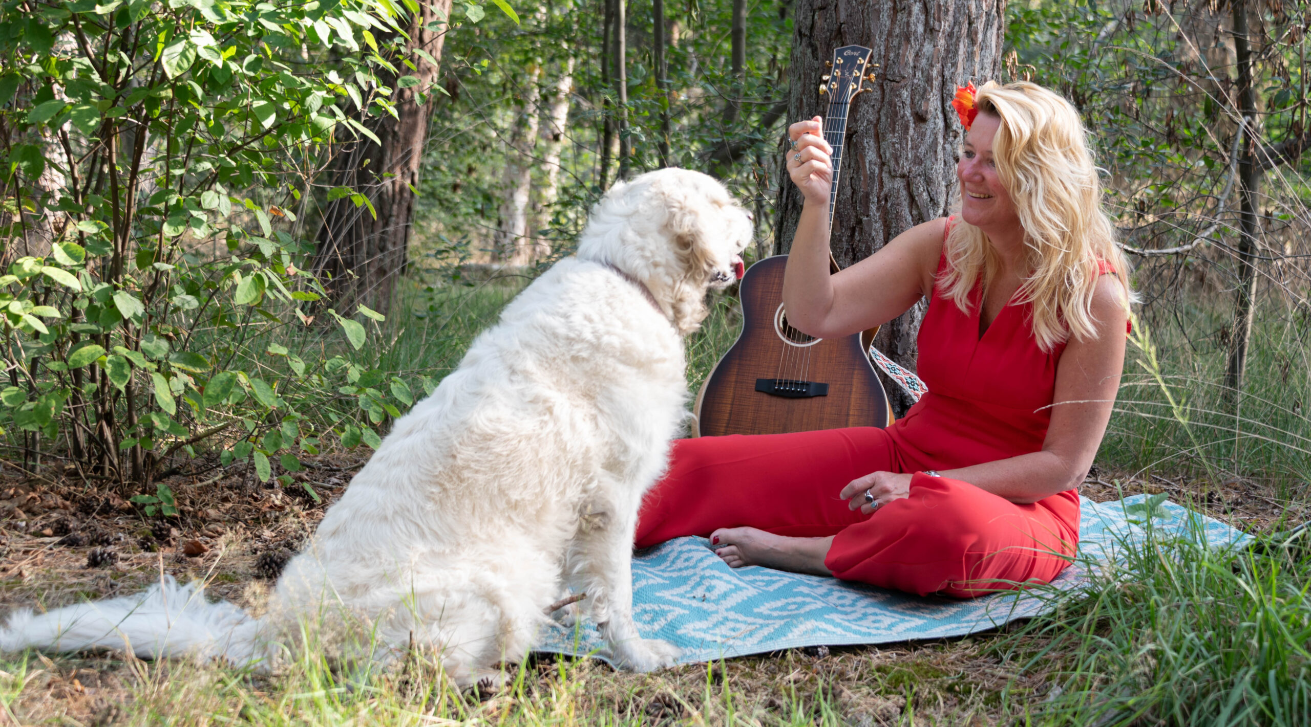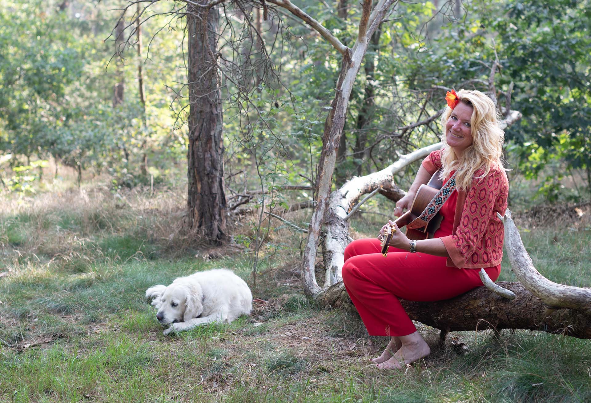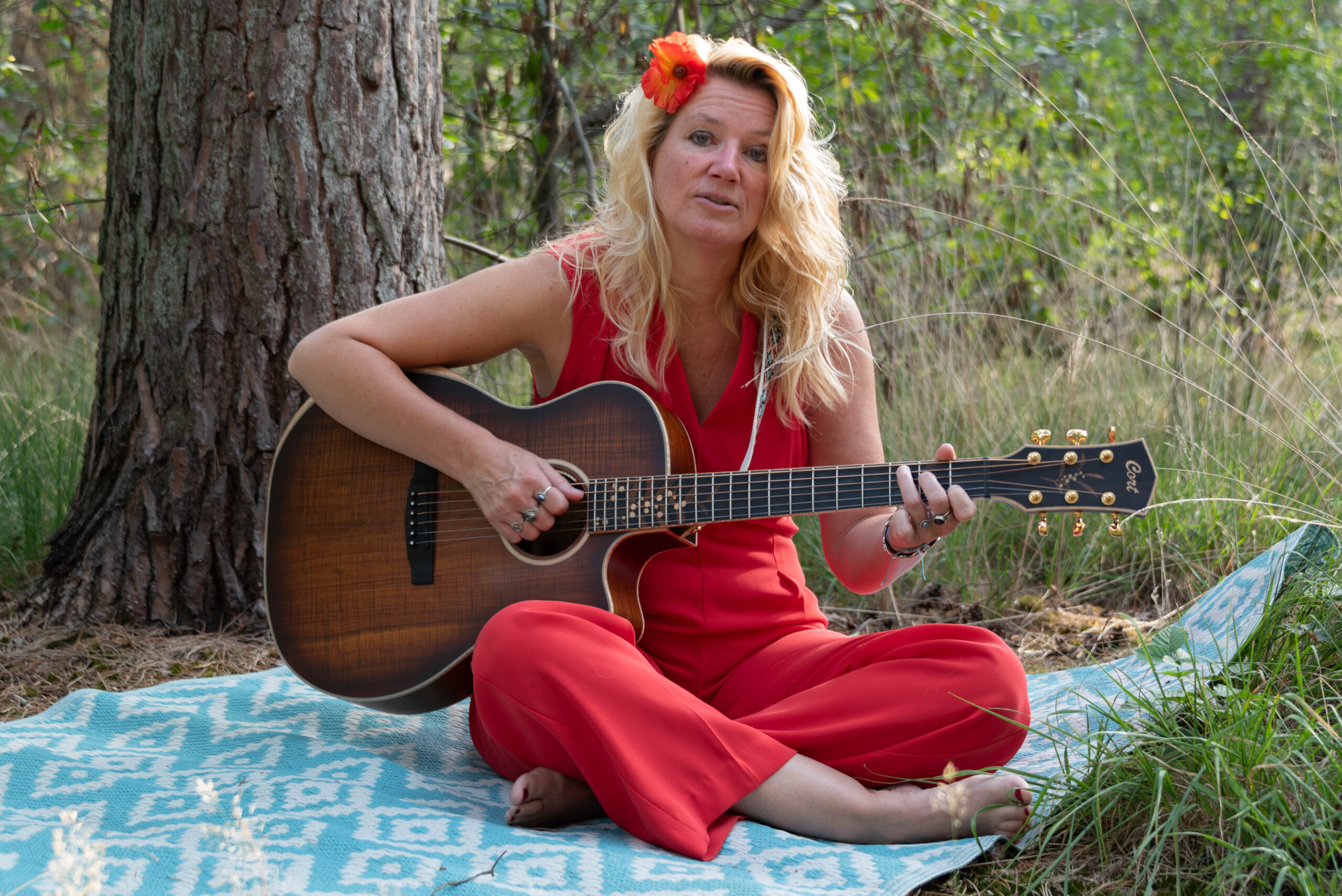 ‘Het was een moeilijke tijd, verlies zorgde voor een depressie en dat bracht me in een doodlopende steeg. Ik zag niet meer hoe het moest, het leven. Maar ik wist ook, er moet nog iets meer zijn, dus vroeg ik hulp en ging ik in therapie. Door die ontvankelijkheid kwam ik in contact met het kind in mezelf, ik leerde dat ik het recht had om te bestaan, om mezelf te mogen zijn. Dat klinkt een beetje maf want we bestaan toch allemaal, maar voor mij gaf dat echt een ander gevoel. Ik gaf het kind een prominente plek in mijn bestaan en liet haar niet meer corrigeren door het strenge, volwassen deel van mezelf. Ik begon met het schrijven van liedjes, dat had ik eerder ook al gedaan maar eigenlijk geloofde ik nooit dat ik het kon of dat het waarde had. Nu begreep ik dat het juist waarde had omdat die liedjes van mij waren en ik ze had gecreëerd’.